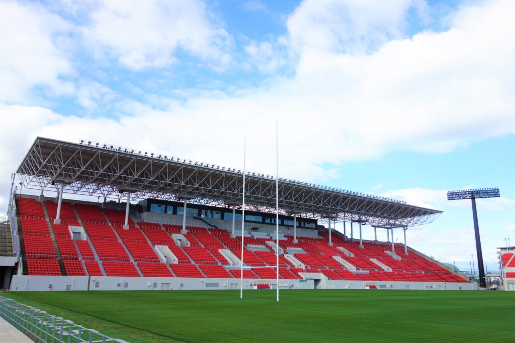 1929 年に開場し、2015 年からは東大阪市が所有。プロラグビーチームである「花園近鉄ライナーズ」のホームグラウンドです。全国高等学校ラグビーフットボール大会の会場としても有名で、同大会は「花園」との通称で呼ばれています。東京都の秩父宮ラグビー場と並んで、国内ラグビー文化の聖地と言われています。ラグビーワールドカップ™2019 の試合会場のひとつにもなりました。
