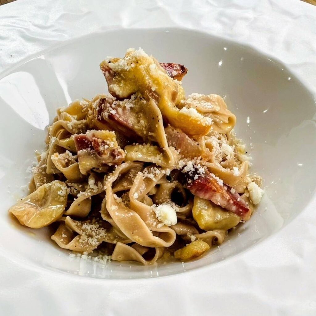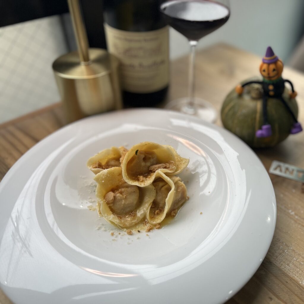 かぼちゃの包みパスタ「トルテッリディズッカ」はトルテッリという包みパスタにカボチャとアマレッティの甘みやチーズのコクが溶け合う。