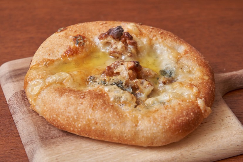 セミフランス生地にゴルゴンゾーラチーズと胡桃を乗せ焼き上げ、仕上げに蜂蜜をかけました。