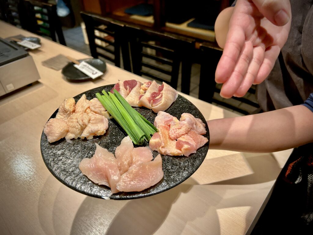 鶏焼の盛り合わせには、『さつま知覧鶏』を使用。