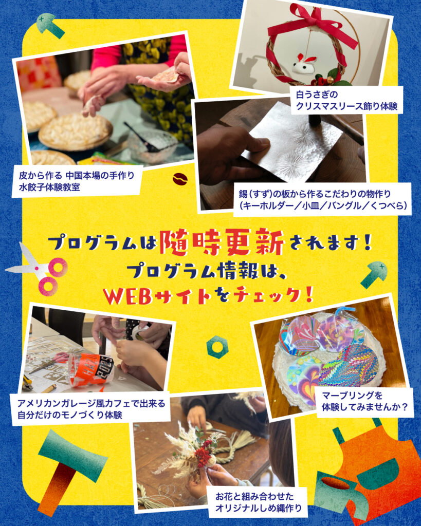 ※ワークショップ・物販・飲食には別途料金が発生します。