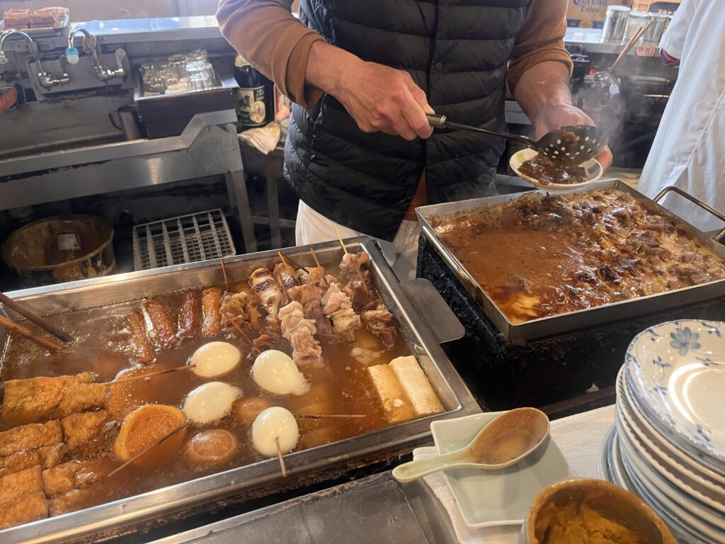 お店名物のだし巻きやおでんに加え、だしを使って炊いたおばんざいもおいしい居酒屋!名物店主との交流も楽しみの一つ!