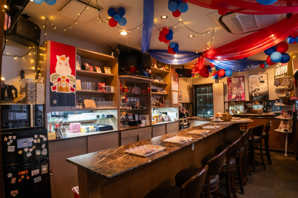 店主チョイスの日本酒や手作りの料理はもちろん、店主の趣味の本やキャラグッズはオタ活する人必須!