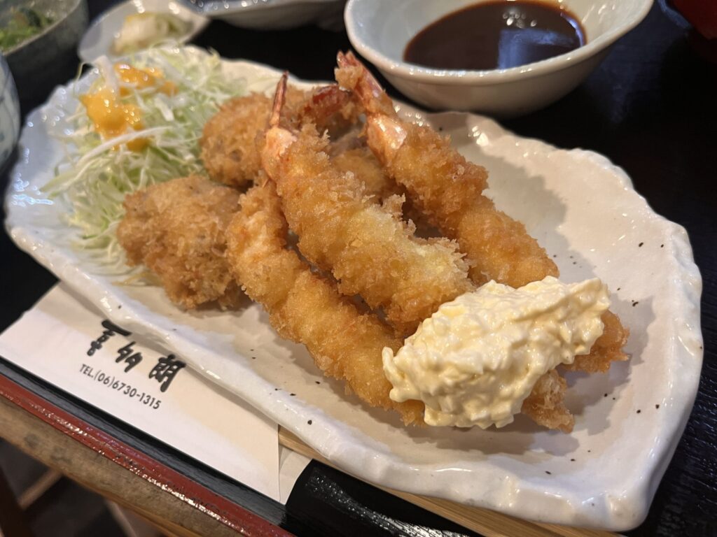 お昼の定食は他にもあり、こちらはえびとチキンフライ。 -