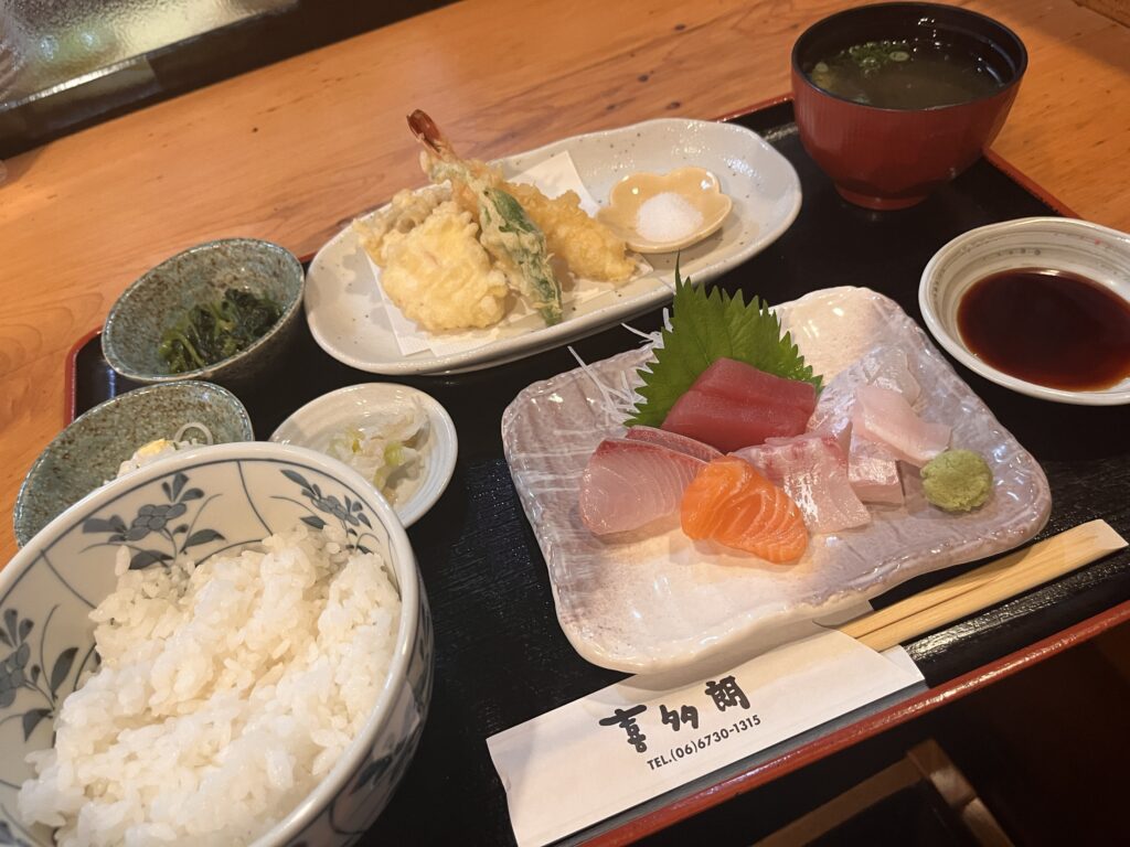 煮つけの味は美味しく、とり天はジューシー、小鉢も箸が進む定食でした。