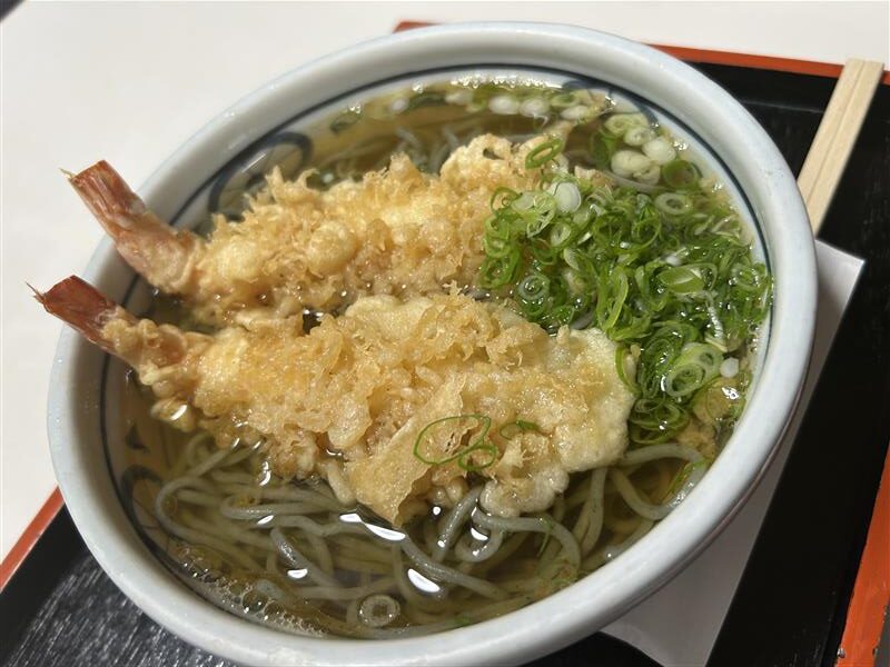 天ぷらそばのエビは2尾乗っておりボリュームも抜群です