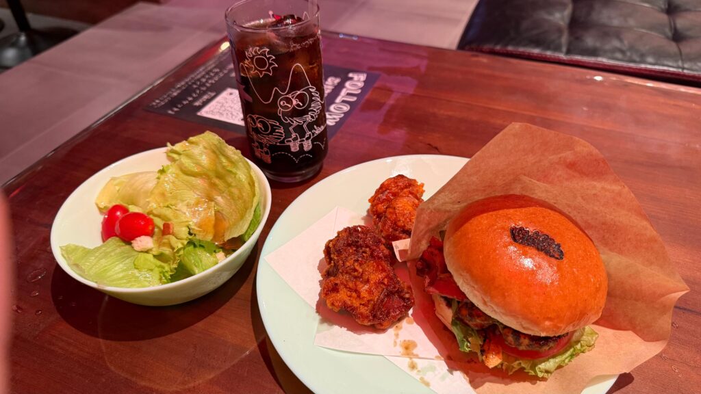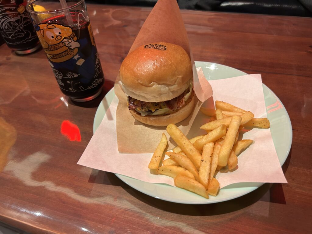 ハンバーガーは手仕込みのパティと香ばしいバンズが相性抜群で頬張ると肉汁が口中に広がります。