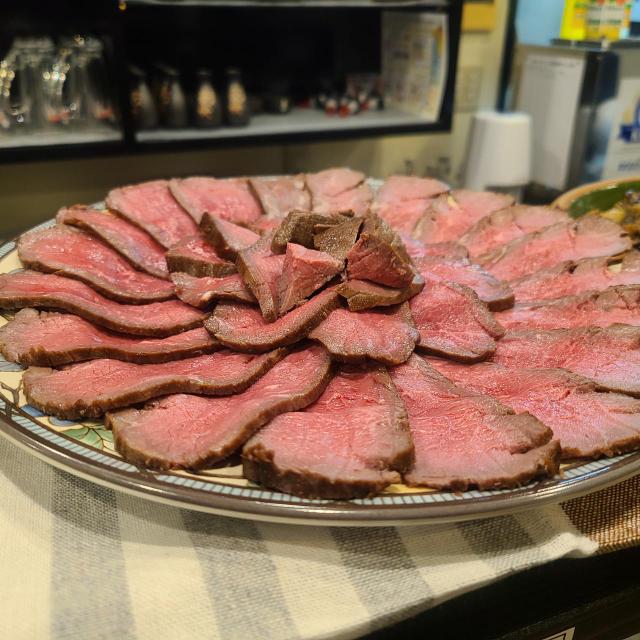 こちらの自家製ローストビーフは国産黒毛和牛を使用した贅沢な一品です。
