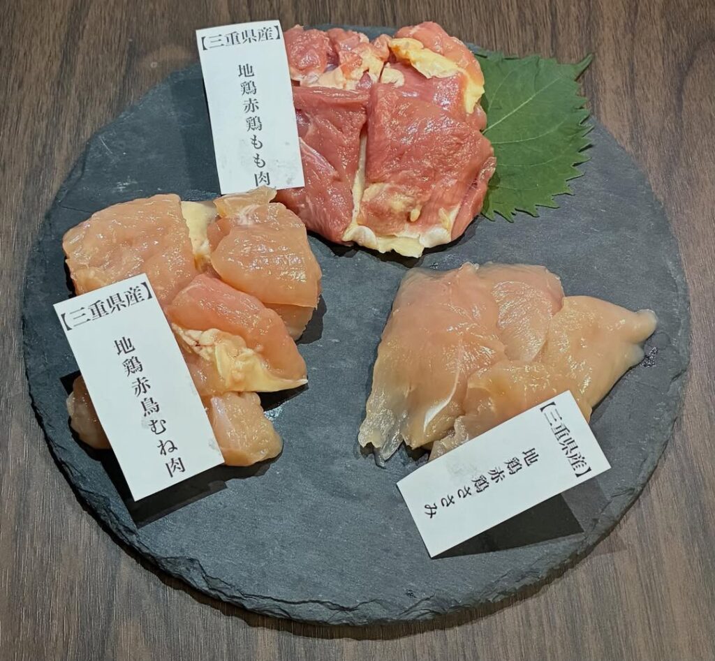 こちらは一番人気の三重県産 地鶏赤鶏 三種盛り です。
