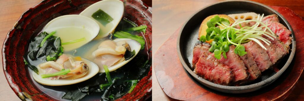 和のお料理以外にも、ワインに合う、黒毛和牛網焼きステーキなどもあります! -