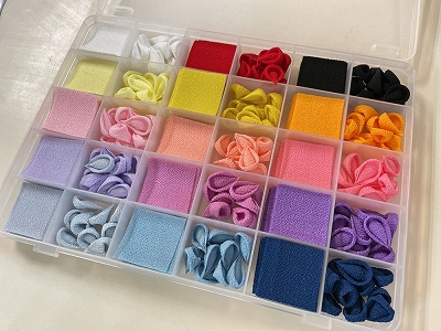 もちろん、一から四角い生地を摘まんで花びらを作って頂くこともできます。