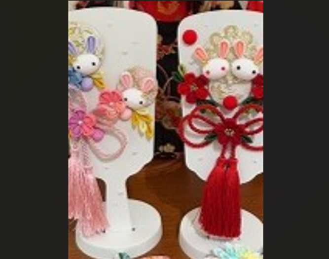 夏休み企画で好評だった「白うさぎとお花」でお正月飾り【羽子板】を企画しました。高さ約25㎝の羽子板飾り。つまみ細工のお花は、出来上がっている花びらを使って作ります。もちろん、一から四角い生地を摘まんで花びらを作って頂くこともできます。