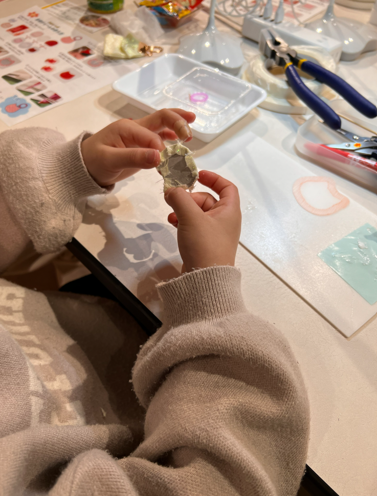 松よし人形では、日本の文化、モノづくりの楽しさを知ってほしいという思いから色々なワークショップを定期的に開催しています。今回は新学期・入学に向けて、可愛らしい目印チャームを企画しました。お雛様の衣裳生地で作ります。目印チャームは、ネコ型、ハート型、丸型の三種類から形を選んで作ります。キーホルダーは、シンプルな形~フリルのラブリーな形などオリジナルで作ることが出来ます。最後にみんな大好きなキラキラビーズやお名前ハンコで可愛らしくデコレーションをしましょう!
