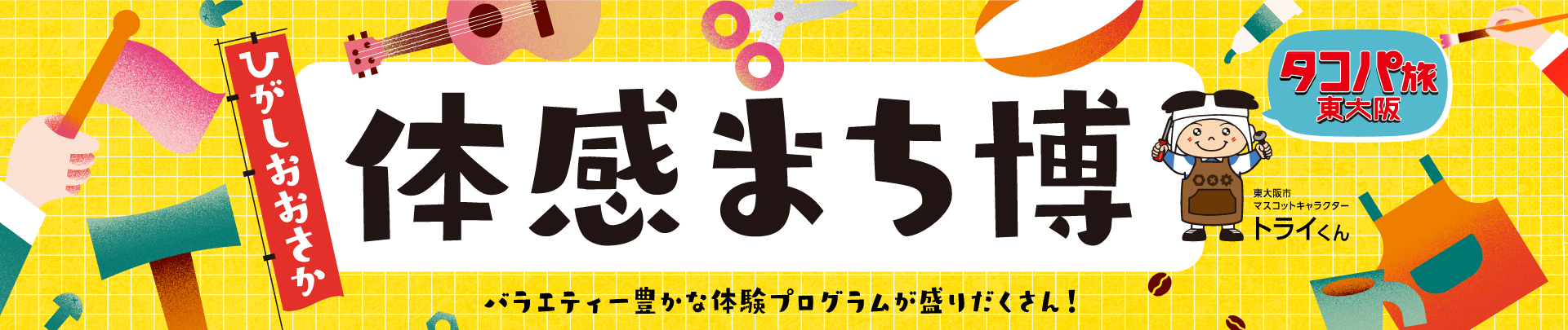 一般社団法人東大阪ツーリズム振興機構は、東大阪市において『着地型観光』の定着化を推進しています。「ひがしおおさか体感まち博」では、東大阪市内の事業者や団体自らが地域資源を活用し、これまでの活動を通して培われた技術やサービスを提供することで、観光客に対して東大阪の持つ魅力を体験してもらうプログラムが開催されます。事業者は随時募集しております。あなたが持つ技術や資源を活かして、参加者に魅力ある体験を提供しませんか?