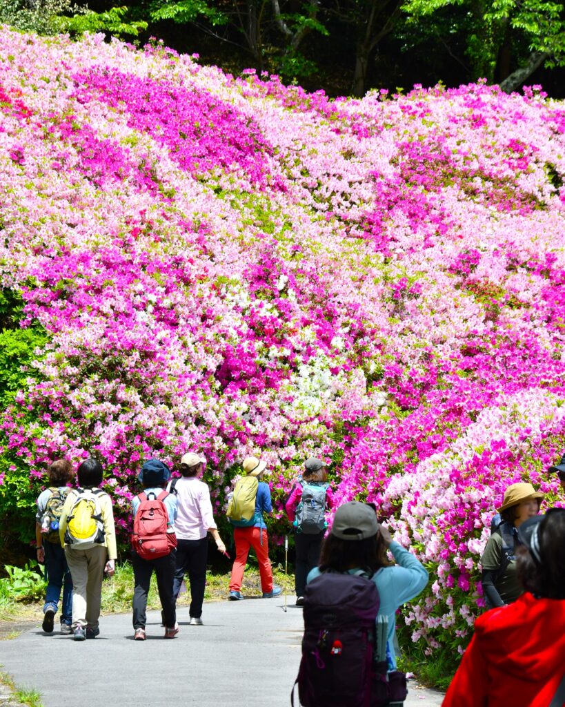 足元から視界いっぱいに広がる色鮮やかなツツジの中を歩く体験は、都市近郊ではなかなか味わえない特別なひとときです。